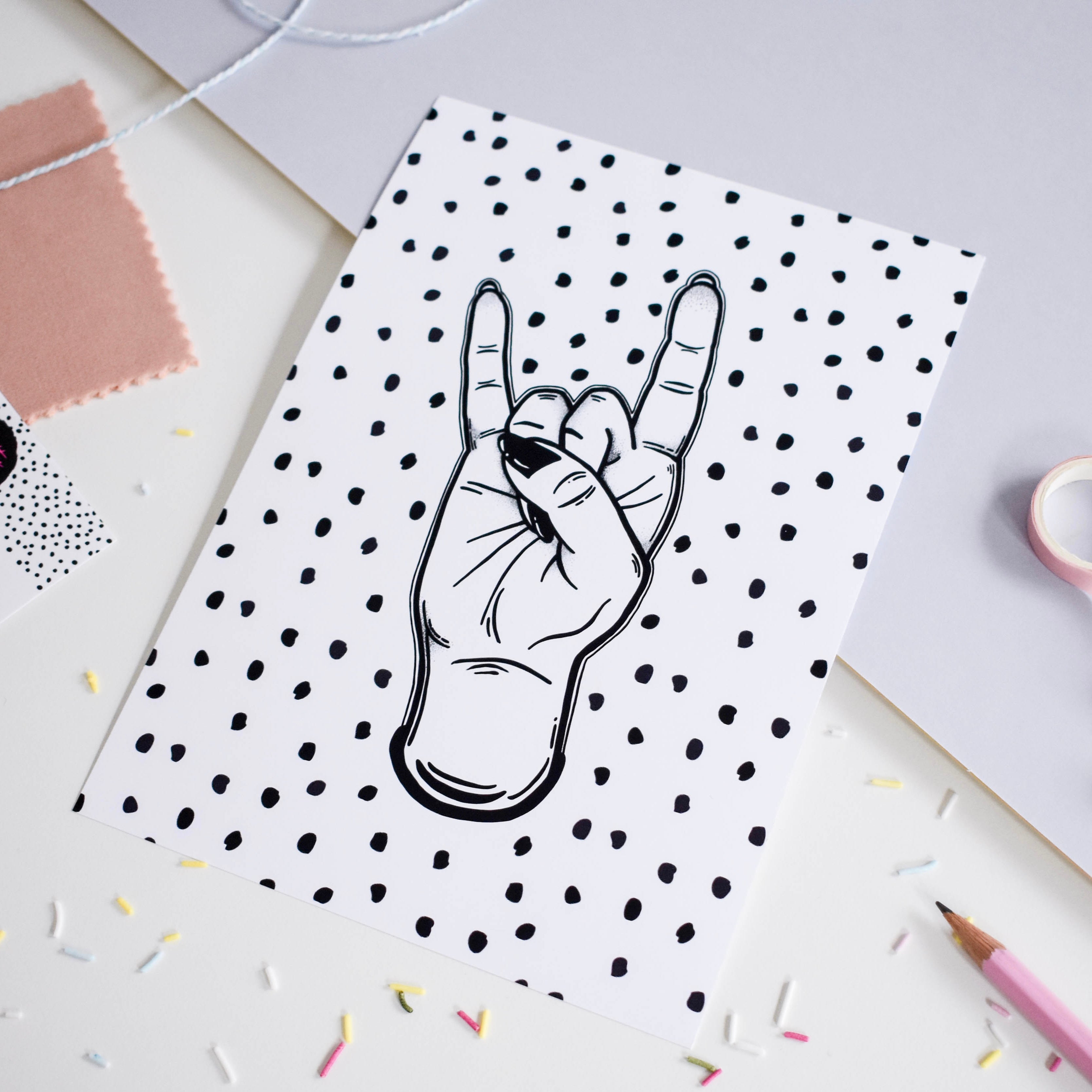 Make a bold statement with Rock Hand Print! This monochrome, hand-drawn design gives you a timeless look that is sure to stand out. The subtle expression of personality in this print brings an edgy yet modern feel to any room. 🤘👌🔥
