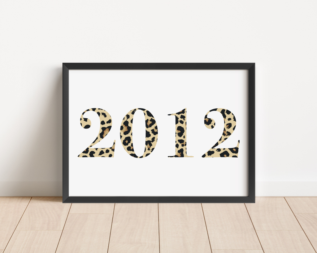 This is a customisable print, to include the year of your choice! It’s in a leopard print pattern on a white background. This would be perfect to mark a special year or date, perhaps your birth, the birth of a child or significant other, or perhaps an anniversary.