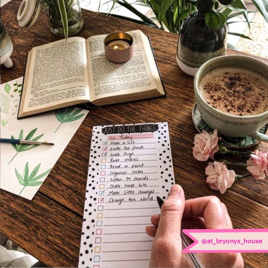 Are you a chronic procrastinator? Do you need a kick up the bum? Well this notepad is your reminder to JUST DO THE THINGS! This is the perfect, compact to-do list for those of you that like a simple list to show of your tasks clearly.Â